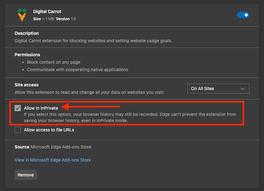 Digital Carrot needs to be able to run in incognito mode to be able to function properly.
